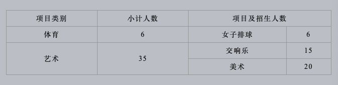 2026年体育艺术类特长生中,该校招收艺术特长生共37人,其中美术特长生25人、音乐(合唱项目)特长生12人。