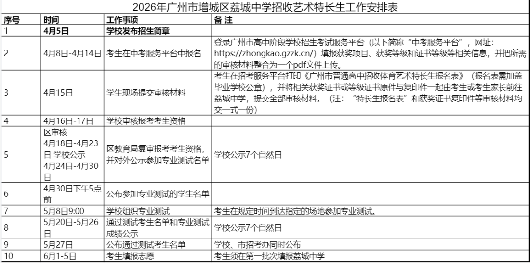 遵照广州市教育局相关文件精神,坚持公开、公平、公正、择优的原则,经广州市教育局审核同意,2026年广州市增城区高级中学特长生招生类别及项目计划如下: